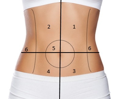 Elles peuvent toucher différentes régions du ventre, se limiter à certaines zones précises ou irradier dans d’autres parties du corps telles que le dos, les bras ou les jambes. Généralement, elles sont très localisées, par exemple dans la partie en haut à droite – ou quadrant supérieur droit.